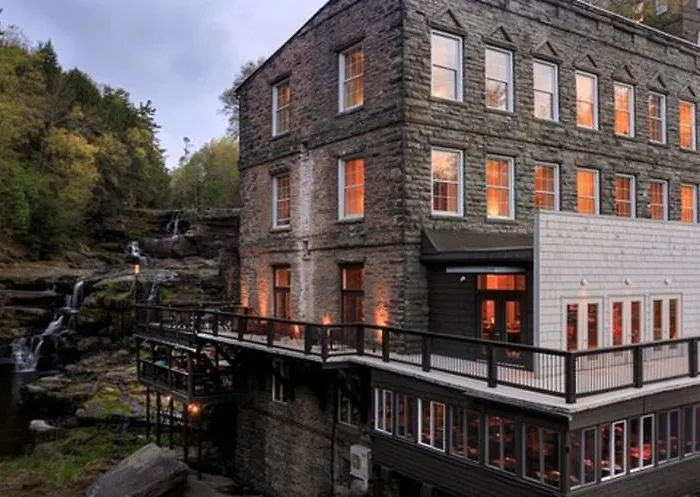 La encantadora Hawley es Pennsylvania. Este hotel histórico se integra perfectamente con los impresionantes acantilados de la garganta del río Paupack, ofreciendo un refugio perfecto para aquellos que buscan escapar de la rutina. Con habitaciones y suites que ofrecen vistas espectaculares de las cascadas del río, cada rincón está diseñado para rodearte de belleza natural y confort.